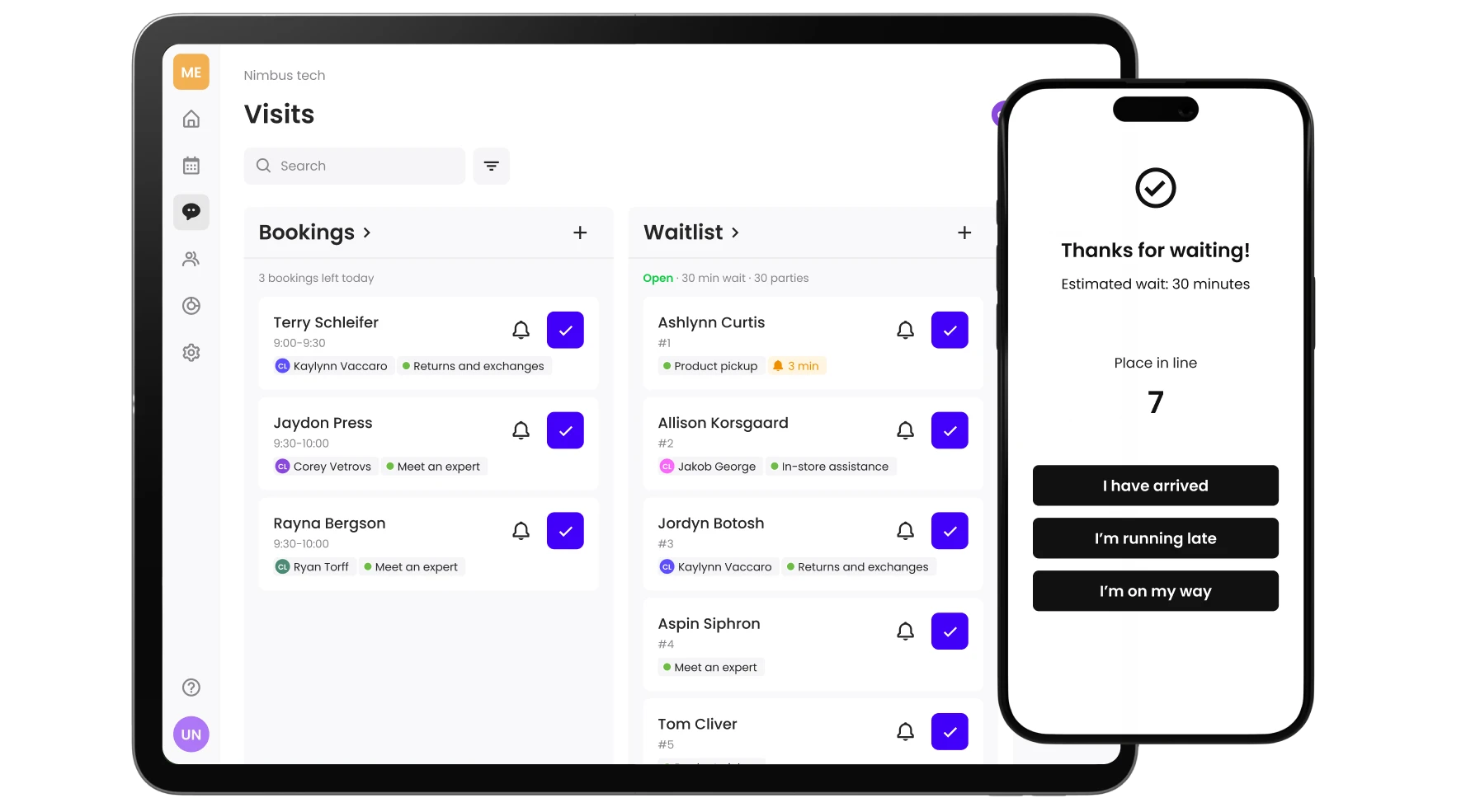 Put queue management on autopilot with hassle-free appointment booking and virtual queueing for any service. Merge walk-ins and bookings into a single customer flow that maximizes resource allocation while minimizing wait times.