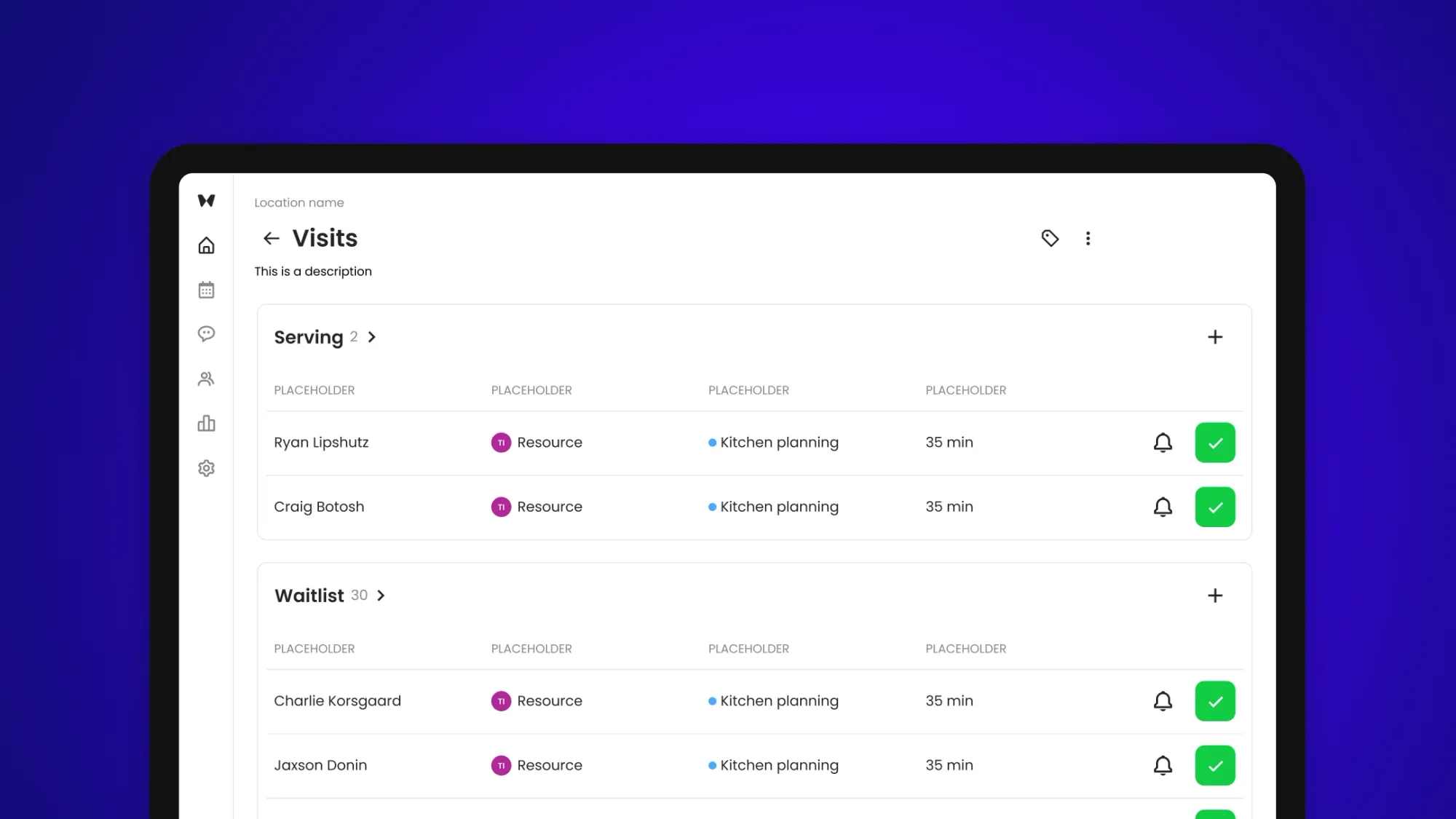 We’re introducing Visits, a new mission control that gives you a complete overview of your waitlist, bookings and flows at a glance. This helps your staff more efficiently manage your guests in one place with fewer clicks.